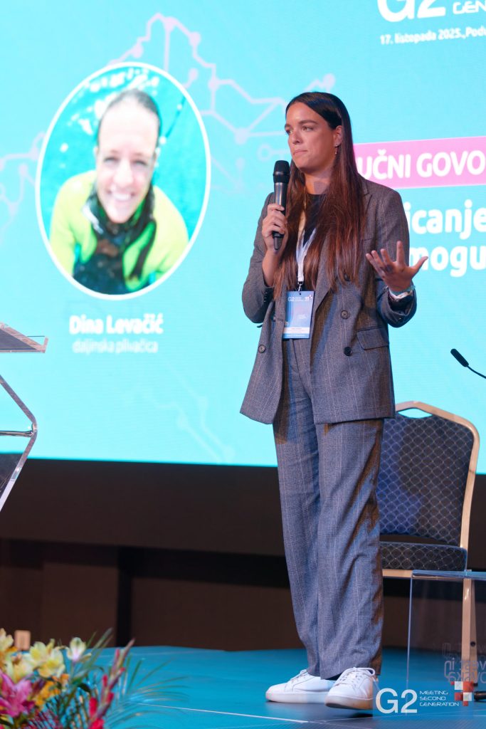 Dina Levačić nije samo vrhunska daljinska plivačica, već i dojmljiva i tražena motivacijska govornica koja ekstremna sportska iskustva pretvara u smislene i praktične lekcije za poslovni i svakodnevni život. Kao prva osoba iz Hrvatske, najmlađa žena i tek 23. osoba u povijesti koja je završila Oceans Seven, Dina se suočila s nekim od najtežih uvjeta na planetu — ledenim morima, nemilosrdnim morskim strujama, nedostatkom sna i trenucima u kojima je mentalna snaga bila važnija od fizičke izdržljivosti.